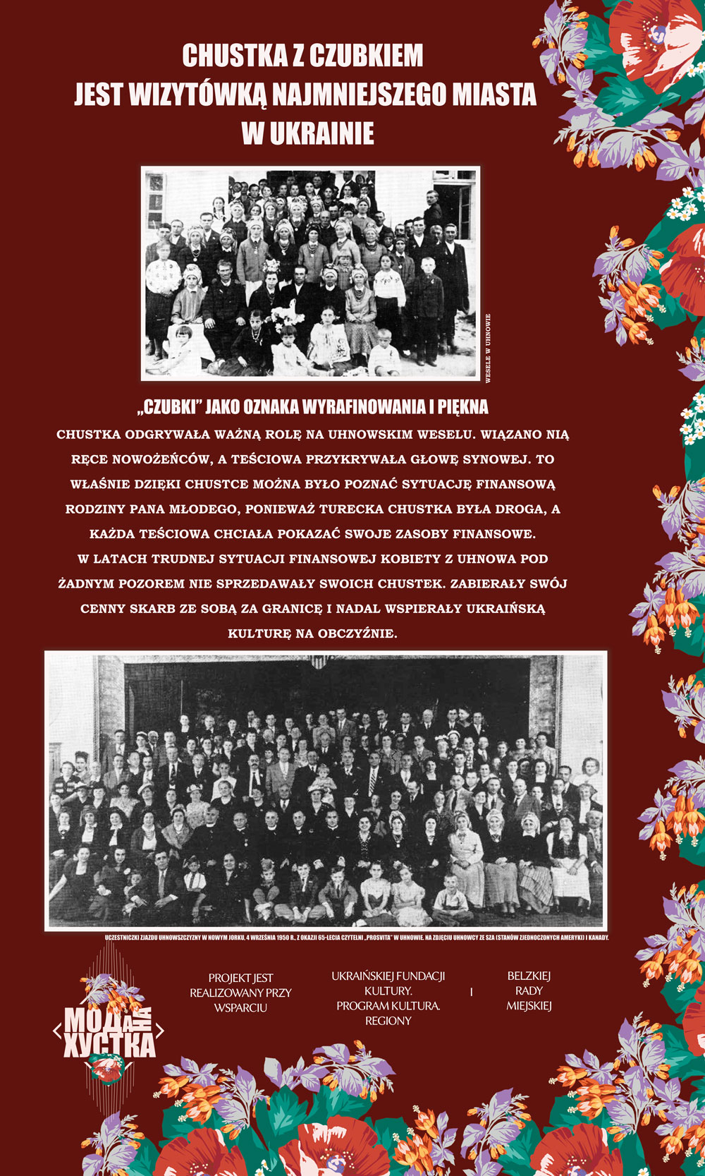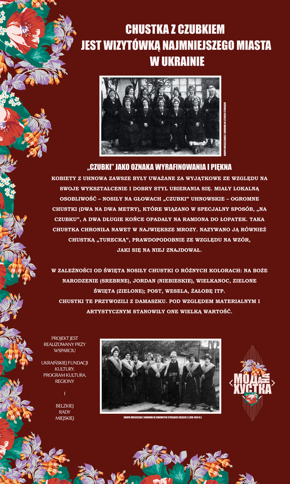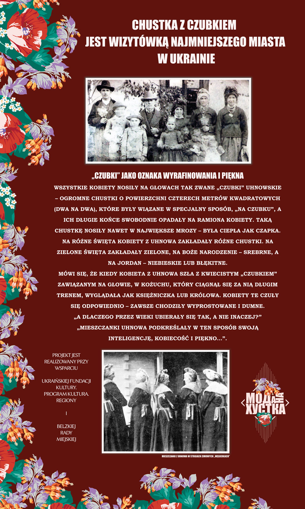 Dla ukraińskich kobiet chustka to nie tylko nakrycie głowy, to jest rzecz symboliczna, ikoniczna i nasze dziedzictwo kulturowe. Chustka łączyła pokolenia kobiet i była przekazywana jako wartość rodzinna z matki na córkę. Powszechnie uważa się, że tylko zamężne kobiety nosiły chustki. Nadszedł czas, aby obalić ten mit i rozpowszechnić MODĘ NA CHUSTKĘ – chustkę uhnowską.
